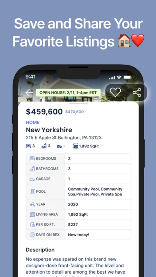 With just a few taps, conveniently save and share your favorite listings, schedule a private showing, connect with an agent to get questions answered and progress forward, plus much more.