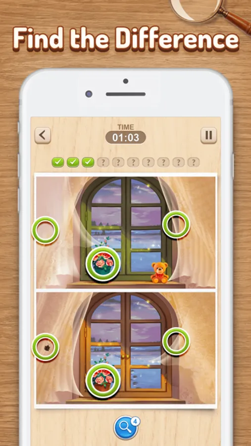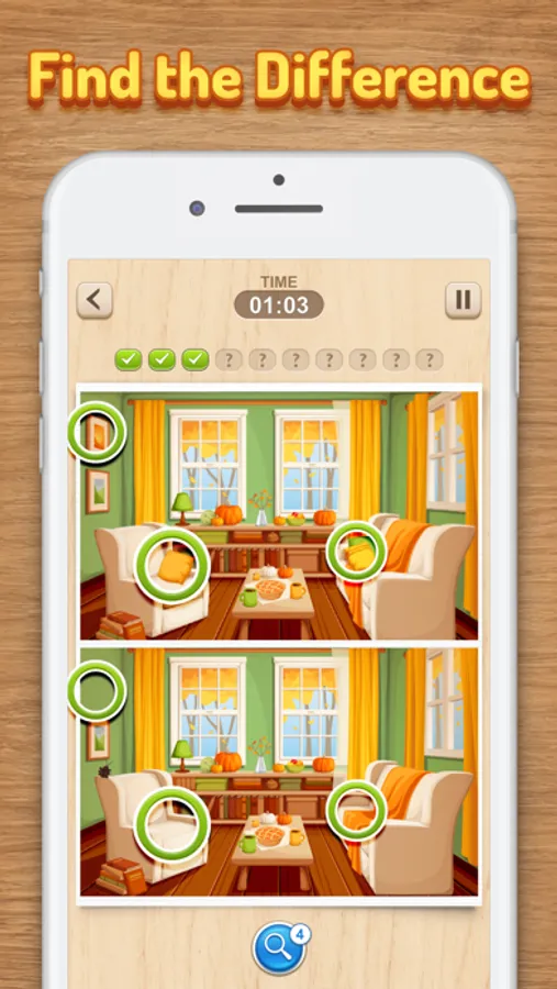 -The game is easy yet challenging! Seamless UI, beautiful pictures, and wisely designed levels will let you enjoy playing, not suffering, and struggling. A good find differences game to train your brain and enjoy the gameplay.