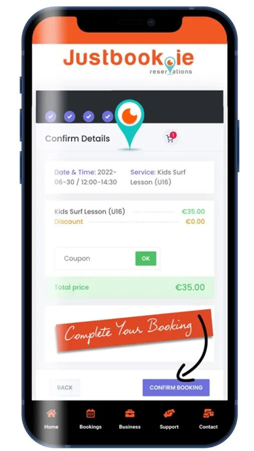 We offer a booking software that will be available on our app & website, also with a snippet of code you can install the booking widget on any other website.