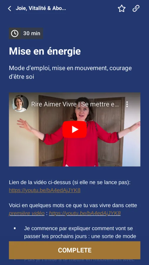 Téléchargez cette application gratuite pour retrouver votre vitalité et votre énergie, trouver votre vocation, vous reconnecter à votre motivation. Reconnectez votre corps, votre esprit et votre âme pour vous épanouir.