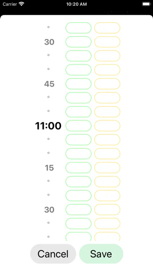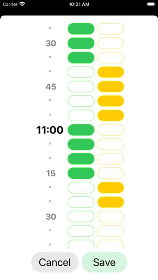You can view each time frame as 5 minute intervals and select them to highlight as green or yellow.