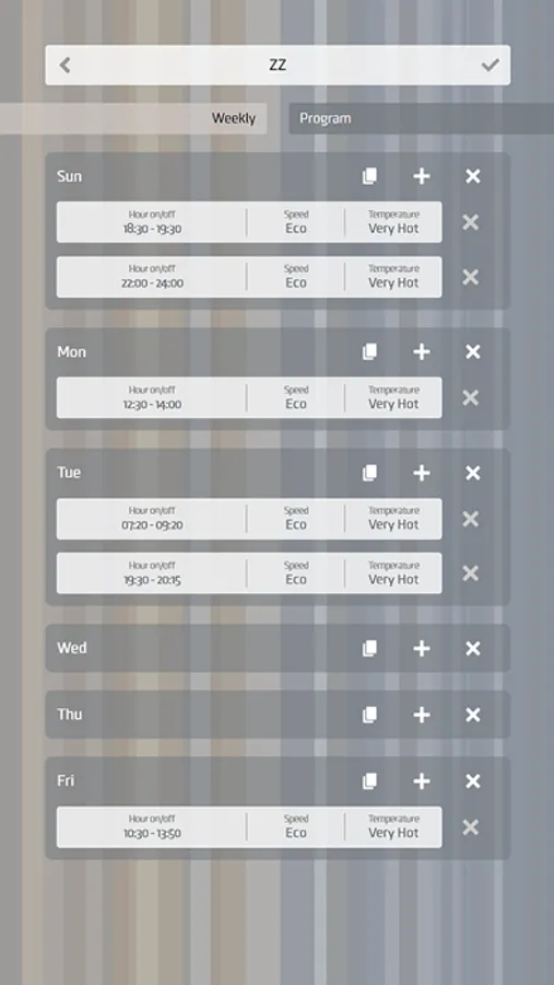 Smart Heat can manage the entire weekly program and settings of your exclusive heater. Manage your time slots of activity, heating speed and temperature, eco settings, and led colour and intensity.