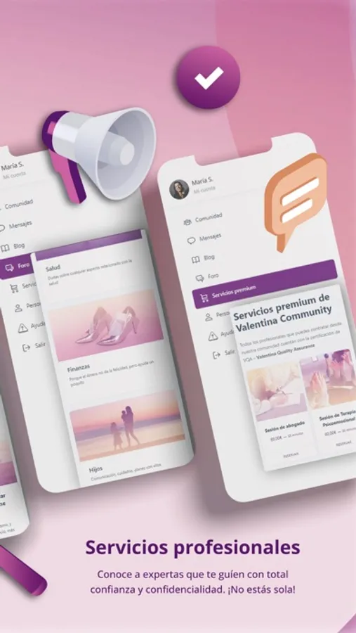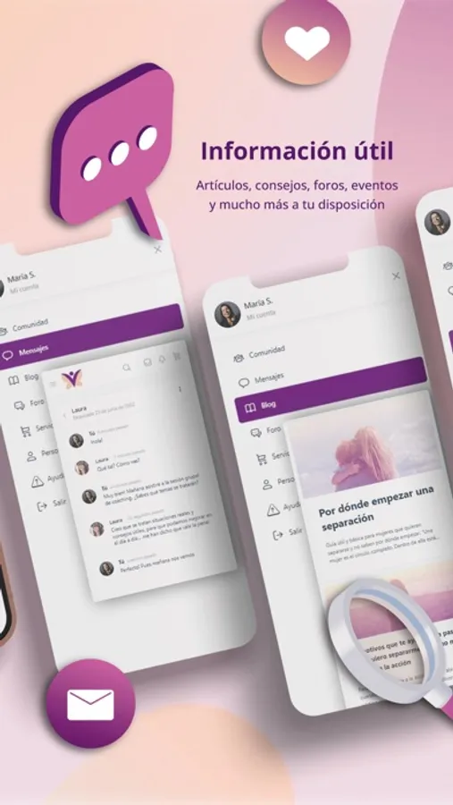 ¿Estás divorciada o estás en proceso de estarlo? En la app de Valentina Community podrás conocer a otras mujeres que están pasando por la misma situación, además de contactar con diferentes expertas que te asesorarán para que lleves tu separación de la forma más saludable y resolutiva.