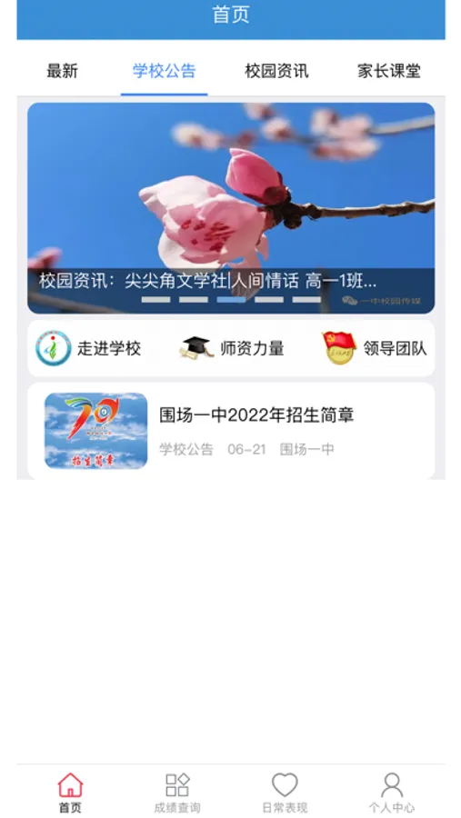 1、了解一中动态,包括:学校最新公告、校园资讯、家长课堂、学校介绍、师资力量、领导团队等。
