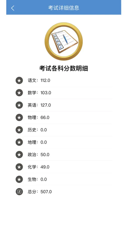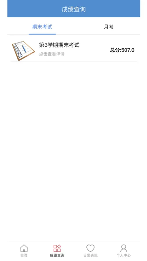 2、查询成绩信息,包括:期末考试成绩信息、月考成绩信息等,并且可以在APP中看到所有以往考试成绩,方便进行比对。