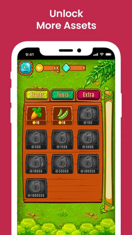 Using agricultural tools is not just necessary, but they also help your garden grow at a better pace. Our garden growing app allows you to use different tools for your garden like a sickle, watering bucket, pest control spray, fertilizers and much more. Upgrade your tool set for even more effective tools.