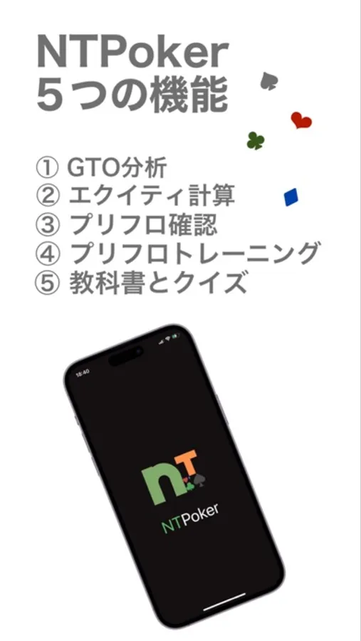 NTPokerはポーカーの学習に必要な機能をたくさん詰め込んだアプリです!