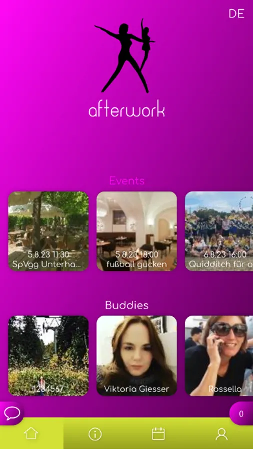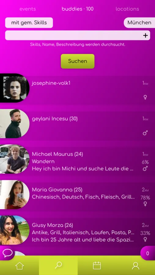 Hier findest Du Buddies, die auch etwas unternehmen möchten. Stöbere in den Events, nimm Kontakt zu anderen Buddies auf oder organisiere selbst Events.