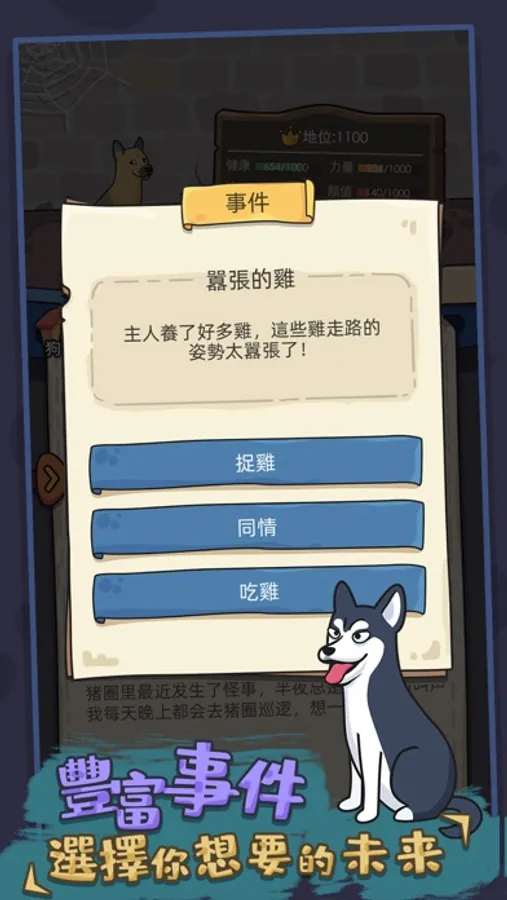 這是一款超高自由度的【模擬】+【文字】類型的的遊戲,你將【模擬狗的一生】,這裏的一切都是隨機發生。