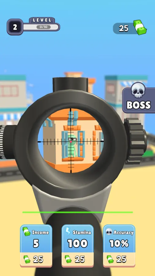 Kill the bad guys and train your sniping skills. Defeat powerful bosses. Earn ranks and be the best sniper.