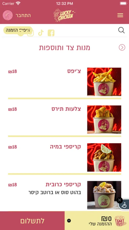 הורידו את האפליקציה ותוכלו להזמין משלוח לאקי צ׳יקן מדהים או לתאם איסוף עצמי בצורה קלה ומהירה.