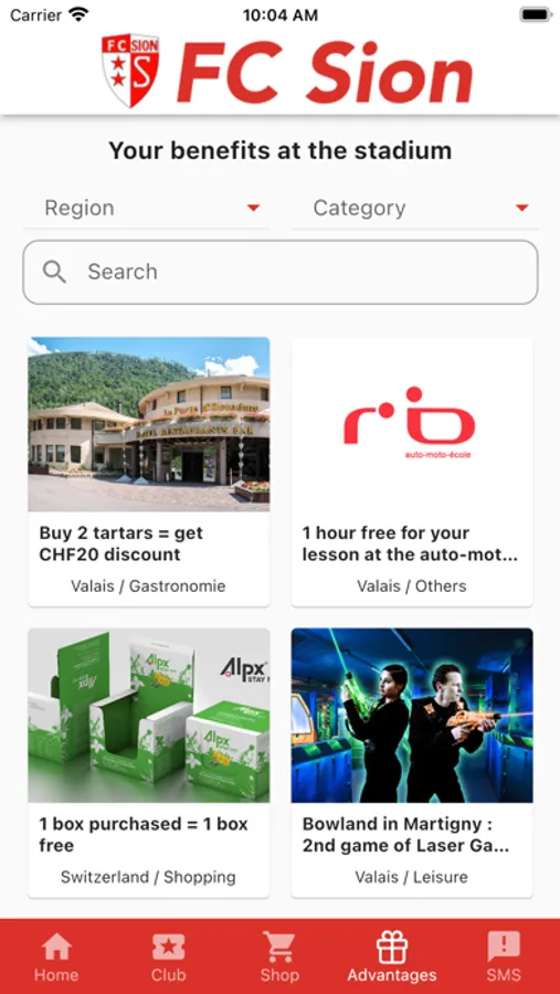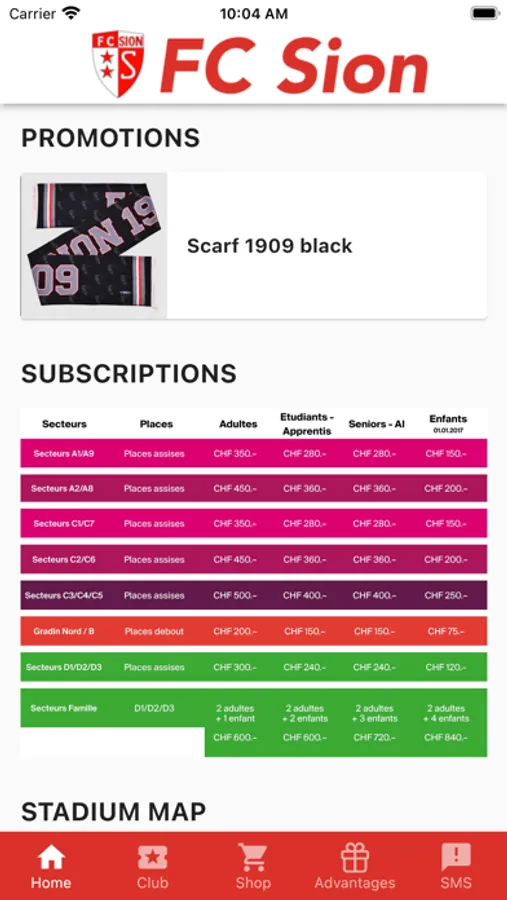 Live at the rhythm of FC Sion with many advantages throughout the season.