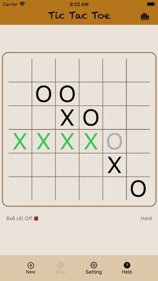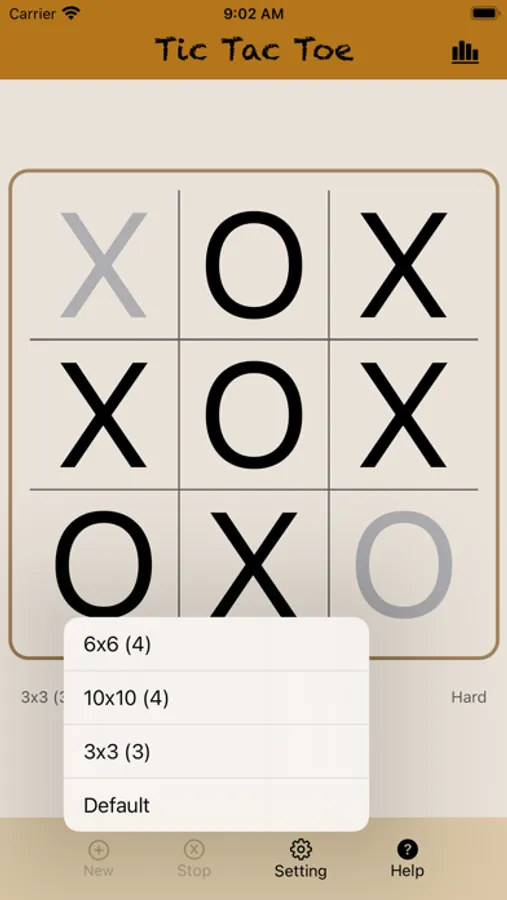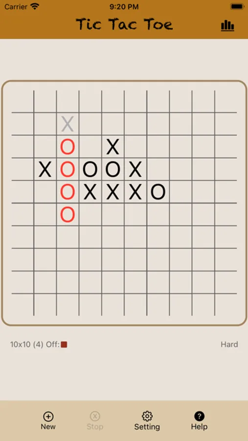 Play the multi-level version of the classic game of Tic Tac Toe against the computer. You can choose the classic 3 x 3 game board or up the challenge by choosing a board up to 10 x 10. Changing the number of winning squares or computer skill level provides a different level of challenge.