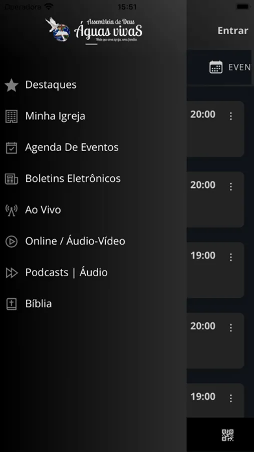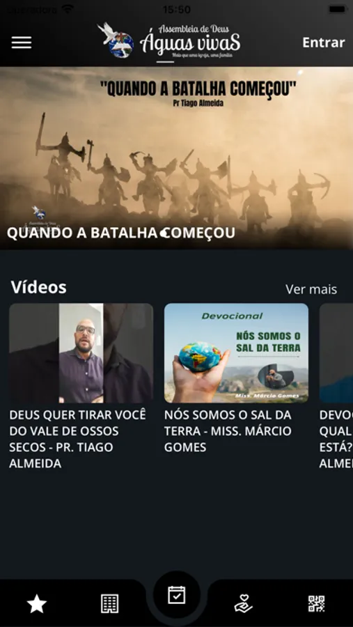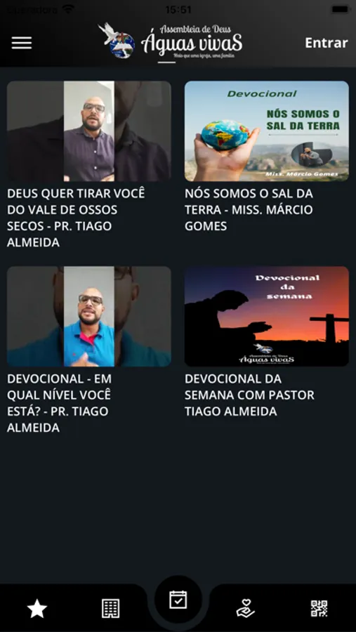 * Conteúdos (Áudio/Vídeo): Permite visualizar e ouvir os conteúdos da Igreja disponíveis no App;