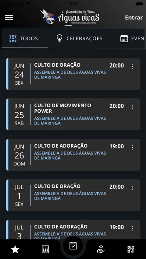 Através do App você pode realizar várias atividades para se relacionar com a Igreja, como: