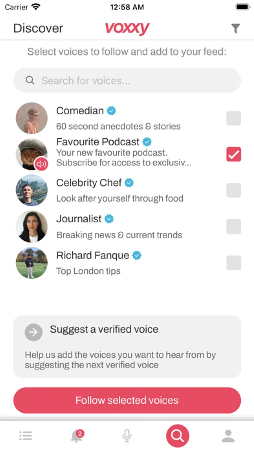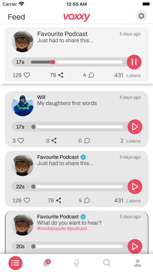 Verified Voices post ‘free-to-access content’ on Voxxy but can also choose to post ‘paid-for content’. All content on Voxxy is audio.