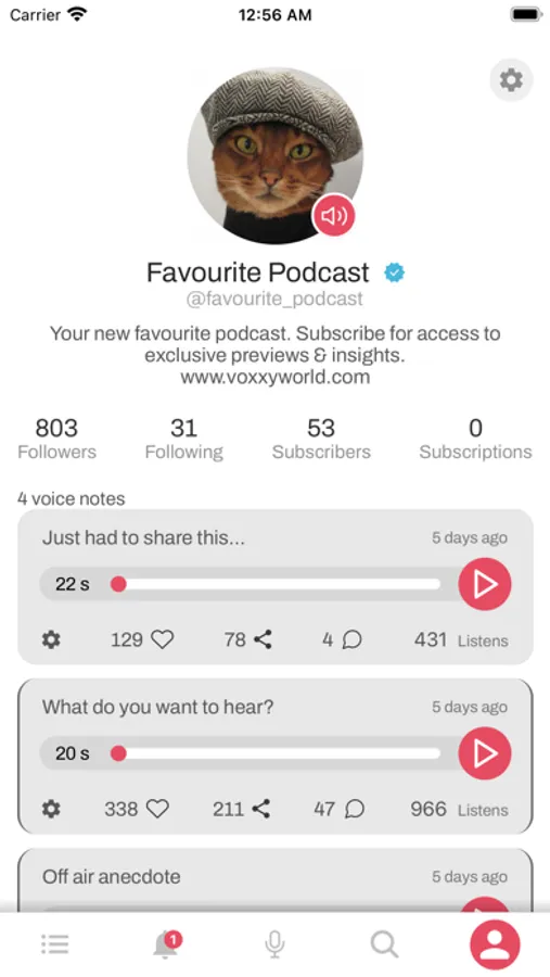 Voxxy is the social app for the audio age where all interaction is through voice notes. Simply chat with friends or follow / subscribe to your favourite influential voices.