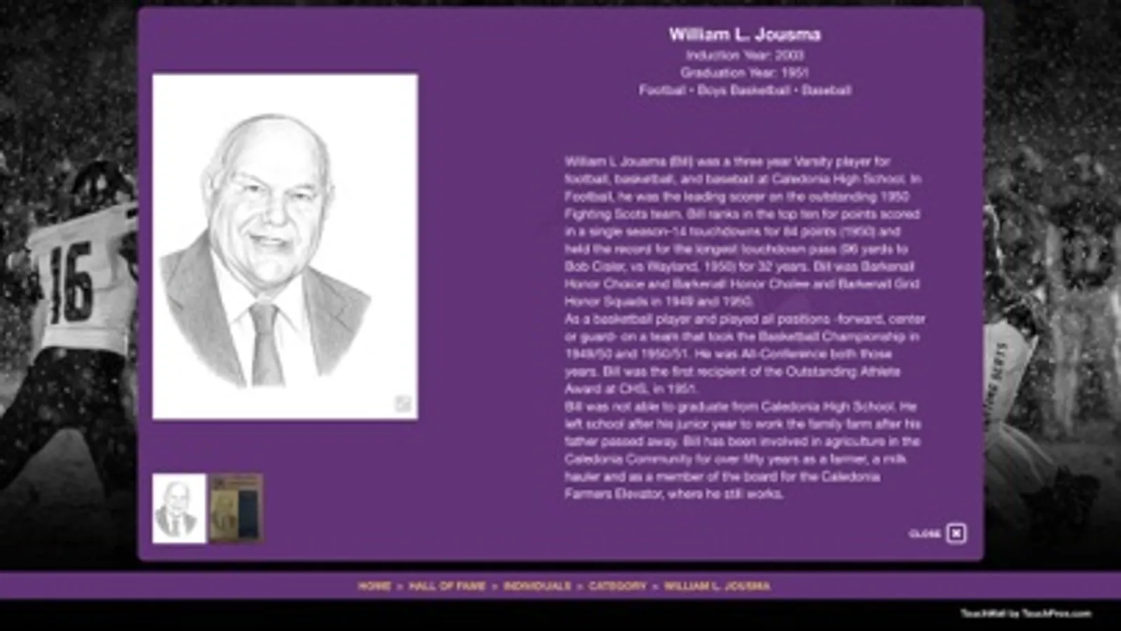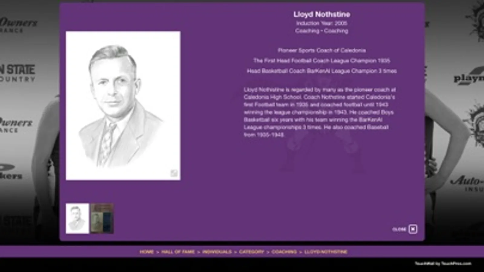 Caledonia High School TouchWall App presents historical information about Caledonia High School's Athletics, Activities, Fine Arts and its Hall of Fame. The intended audience are members of the Caledonia High School community be it current school families, school administration, and general school supporters.