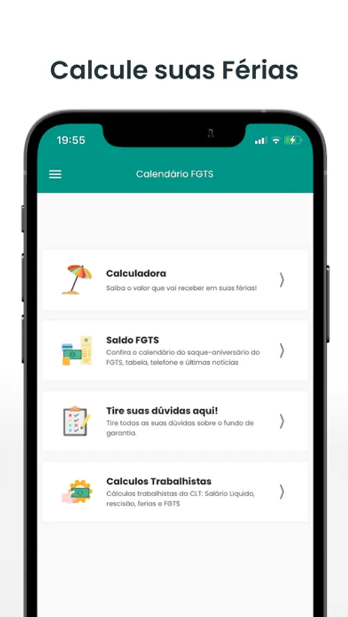Com o App Calculadora de Férias é possível calcular o quanto você pode receber de salário de férias a partir do seu salário bruto e dos principais descontos (INSS e IRRF) além de tirar aquelas dúvidas frequentes.