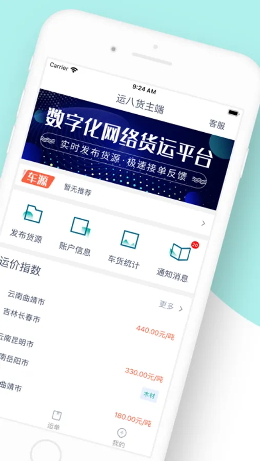 运八网络货运平台专业配货、货车ETC、加油、货车买卖等综合物流服务软件。贴心界面,操作更便捷,功能服务更丰富,成为司机助手,让货运无忧。海量货源,无限匹配界面优化,操作便捷在线交易,安全保障货车保障,高效服务贴心加油,货运省心注册简单,配货便捷拉货积分,多重好礼
