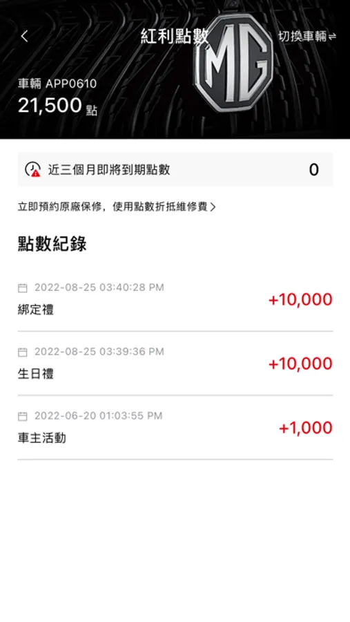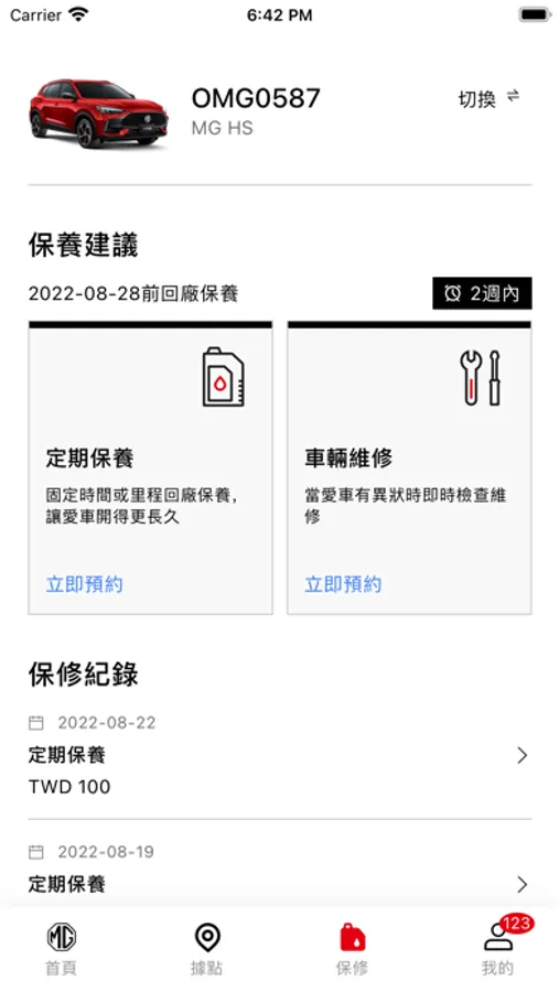 ■維修履歷:當車輛回到MG服務廠維修、保養及消費,從「MY MG」APP可查詢消費內容及日期,幫助客戶掌握車況