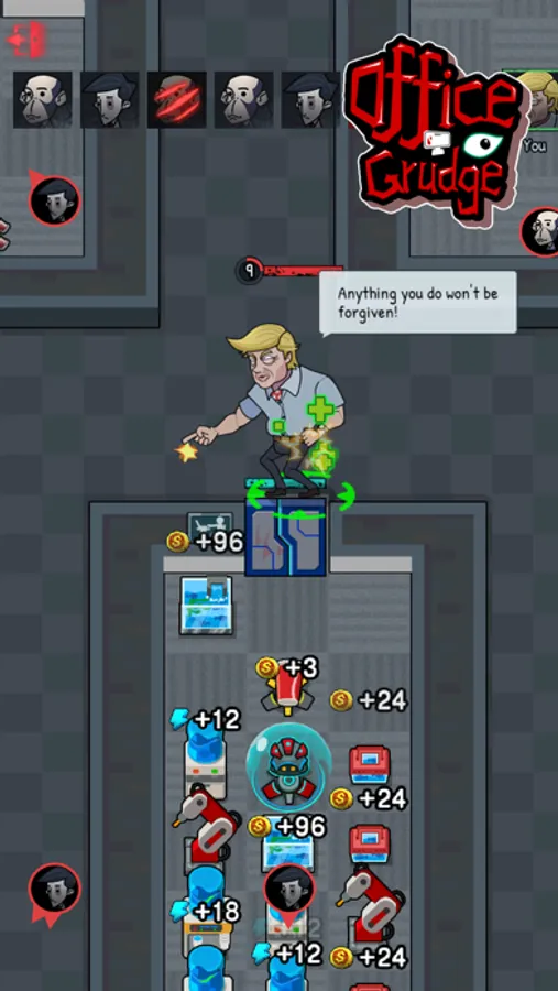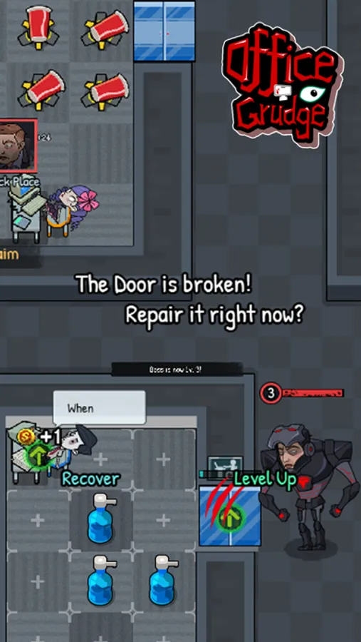 After you get in the room, the Boss will try to break in your office. Build your defense to fend off the attacks from the Boss.