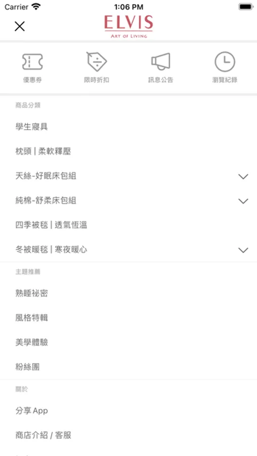 快下載ELVIS愛菲斯APP,掌握最新消息,分享寢具知識,教您挑選最適合的寢具。ELVIS不定時推出限時優惠,與會員分級制度,成為VIP獲得專屬折扣!鎖定我們的推播訊息,不錯過任何好康活動!