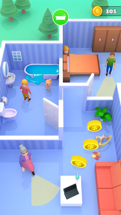 television.The goal is to go from one side to the other as quickly as possible, Collected Coins ,Milks and Keys for Door possible while avoiding the family in home who are observing and discover baby.
