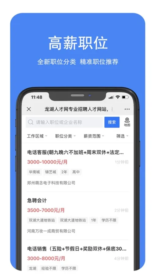 【龙湖人才网】是一款郑州南龙湖本地综合型求职/招聘 APP。 求职者可对企业进行准确匹配,快速浏览职位信息,随时随地与企业HR在线开聊。 覆盖行业:互联网、金融、汽车、房产、快消、制造、人工智能、广告传媒等各行各业,现已成为销售、财务、技术、IT、产品、人资、管理……广大求职者选择的应用APP。 【职位更匹配】智能准确匹配,机会更大、更多 【职位更真实】企业/职位均人工审核,6重严审保障职位真实有效 【求职更高效】与HR在线畅聊,在家也能换工作 【职位更高薪】心有多大,薪有多高,好工作,月入过万不是事儿 【附近好工作】锁定附近好工作,上班绝不迟到 【企业更全面】行业各业,上万家企业,过万好工作任你挑 【简历更有型】针对不同专业/行业设定上万种模版,让你求职更通畅