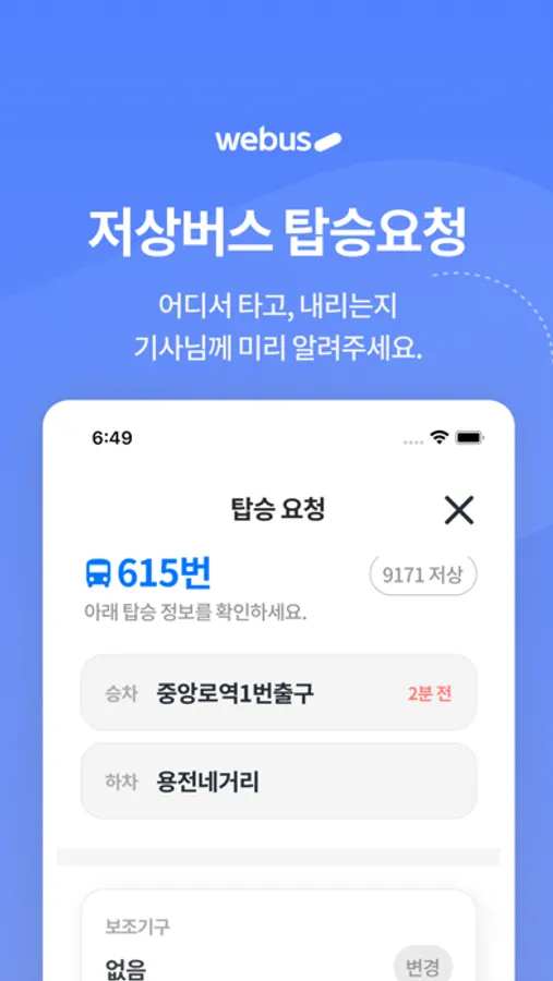 1. 저상버스 탑승요청 : 어디서 타고, 내리는지 기사님께 미리 알려주세요.