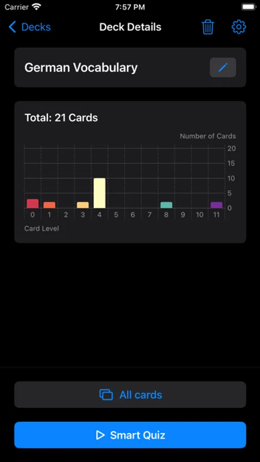 Smart Flashcards App is the best App to learn and memorize anything, from a language to organic chemistry. It uses the spaced-repetition system proposed by the German science journalist Sebastian Leitner. You will be creating a deck for each study subject, such as German language, or Geography. For each subject aka. deck, you will have to break down your study material into small chunks , such as the meaning of a word, if you are learning a new language, then create a flashcard for each chunk of information. Once you have added your study material, you can start practicing by taking smart quizzes. The quizzes are smart in the sense that you repeat the flashcards that you learn faster less often, and vise versa.