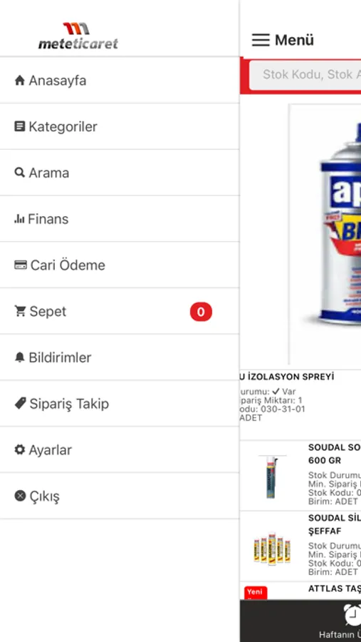 Mete Ticaret B2B Sisteminin Mobil Uygulaması.