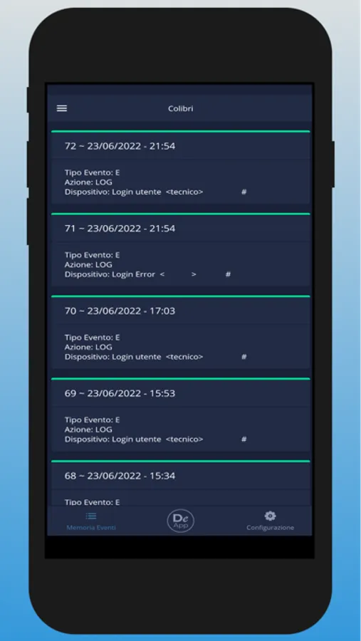Applicazione per la gestione del sistema anti intrusione della serie Colibrì.