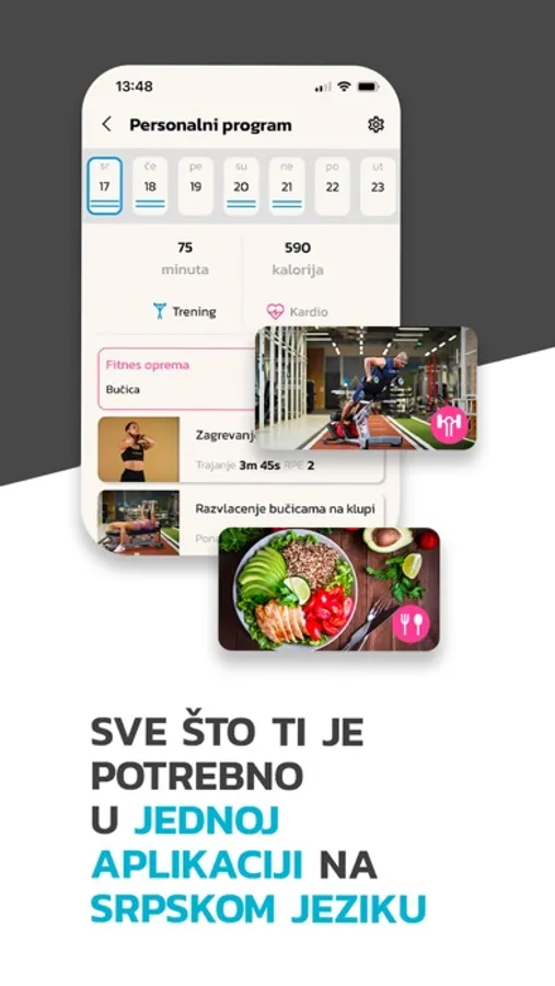 - Plan treninga kreiran u skladu sa tvojim fitnes ciljevima i nivoom težine na kojoj se trenutno nalaziš