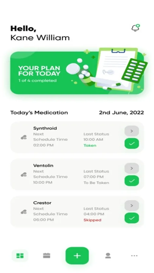 The App notifies you when your medications are due to be taken, keeping track of your medications by creating a schedule of your prescriptions and a pdf report that is downloadable, and printable at any time. If you designate a Confidant, the App notifies your Confidant if you missed three notifications consecutively