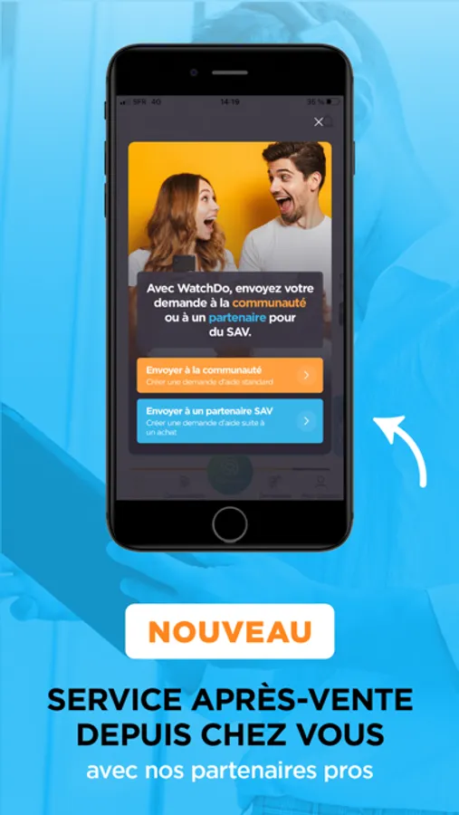 Vous vous rendez dans votre magasin qui dispose d'une signalisation WATCHDO PRO "votre professionnel utilise l'aide en visio". Une fois que vous avez fait votre achat, si vous rencontrez des difficultés de fonctionnement inutile de revenir en boutique mais actionner l'aide en visio SAV sur Watchdo.
