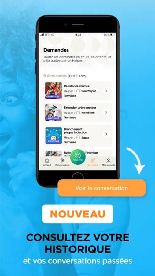 ● En tant que Helpme (personne ayant besoin d’aide), vous pourrez profiter de la communauté de Helpers (personnes venant en aide) qui sauront se rendre utiles et disponibles pour partager leurs connaissances et ainsi vous aider au mieux dans la résolution de votre problème.
