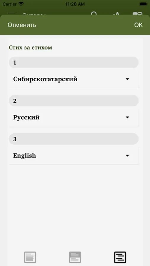 This Scripture app facilitates Bible study in the Siberian Tatar language. Users can highlight the text with different colors, make bookmarks, write notes and view their reading history. The Russian (NRT) and English (WEB) translations can optionally be added in parallel or in verse-by-verse mode to the Siberian Tatar text.
