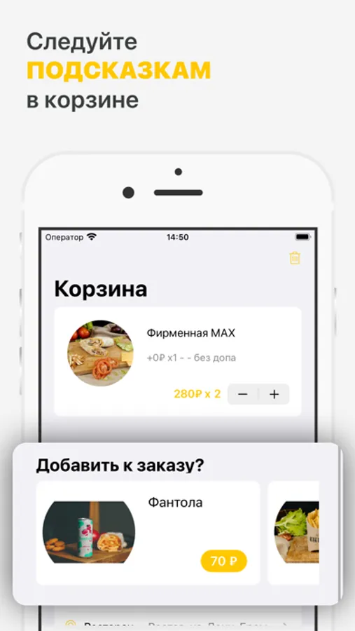-выберите понравившиеся позиции из меню, добавьте их в корзину и перейдите на экран оформления заказа (кликабельна иконка корзины);
