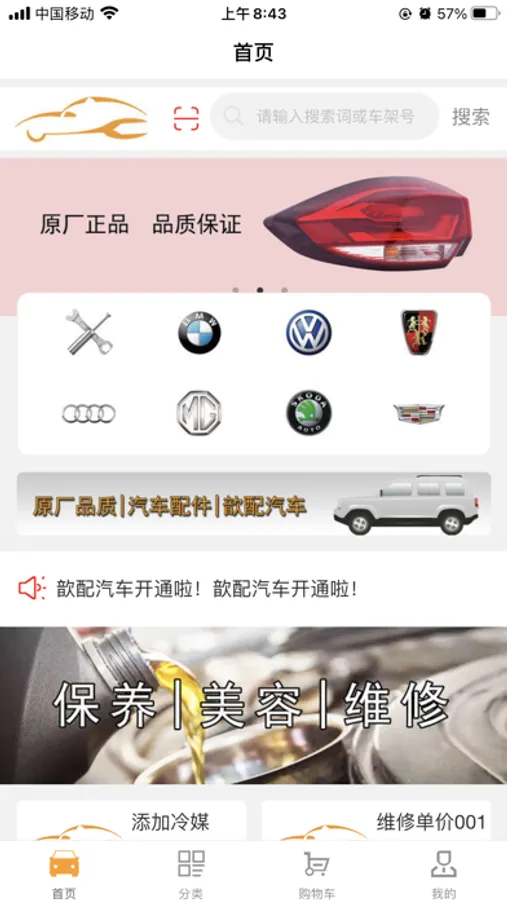 方便用户查询所需汽车零配件,查看对应的配件参数,确认后可以直接购买