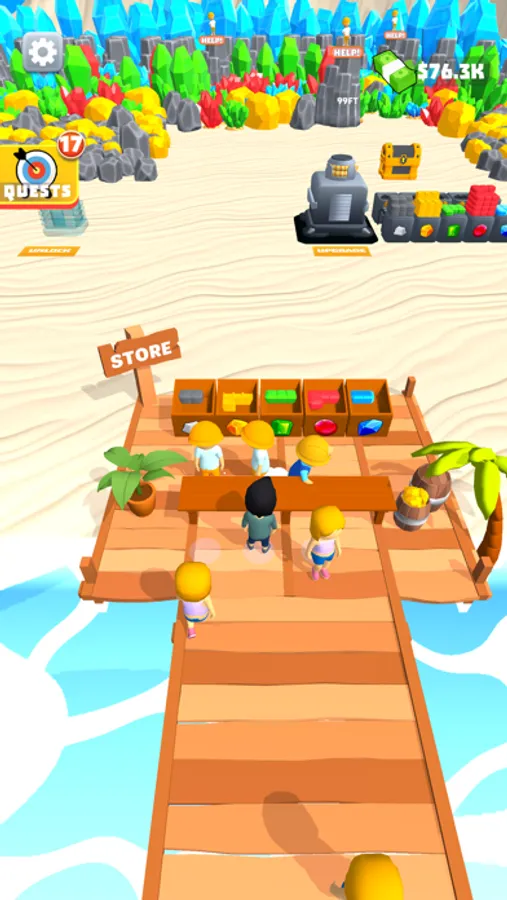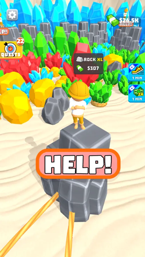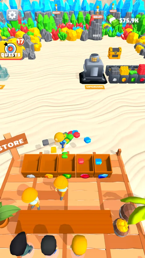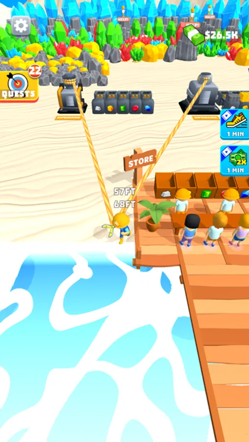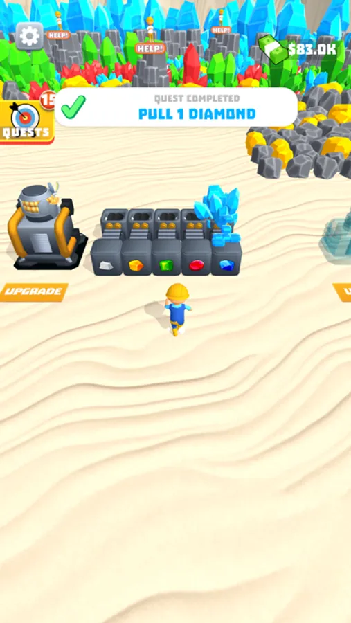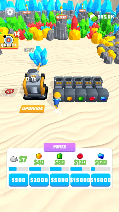 Pull valuable mines and upgrade your machines. Save people from and make them work for you.