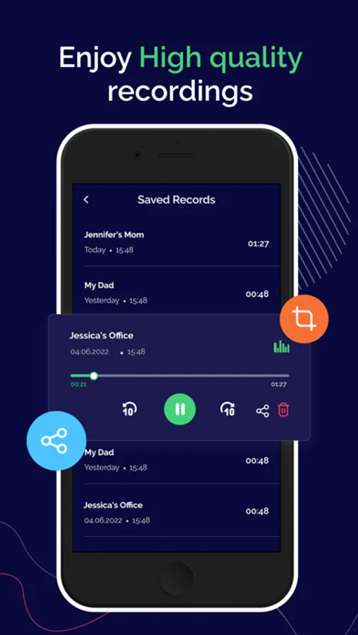 Call recorder is a must-have app for saving every detail of your business and private calls with an intuitive and user-friendly interface. Ever forgot dates, names, numbers, or places that were mentioned during the call? It is easy to turn your phone conversations into handy voice notes for later use. Record, save and listen to phone calls anywhere and anytime in a few clicks!