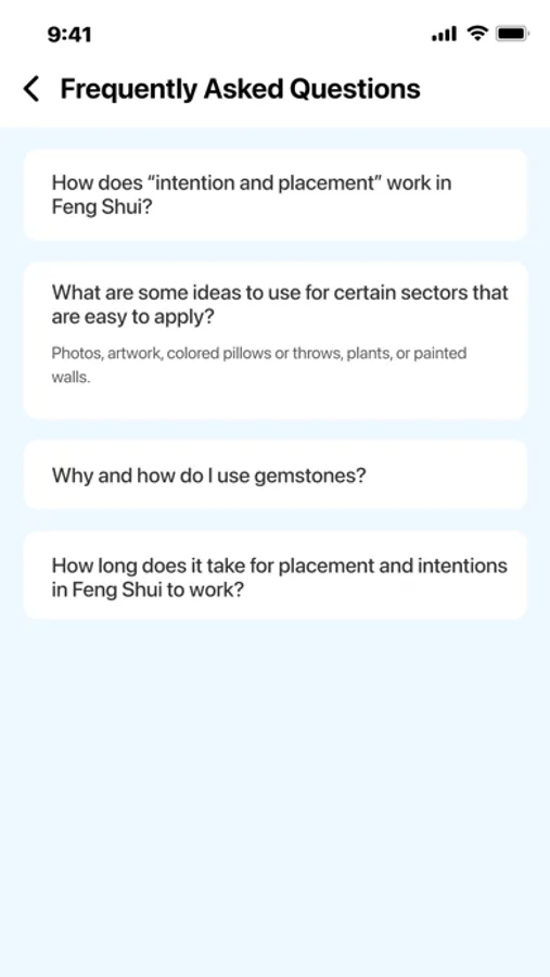 All you need to do is check the eight areas of Bagua in the app, each representing a life aspect- Health, Wealth, Fame, Love/Relationships/Children, Creativity, Mentors, Career & Spiritual Growth.