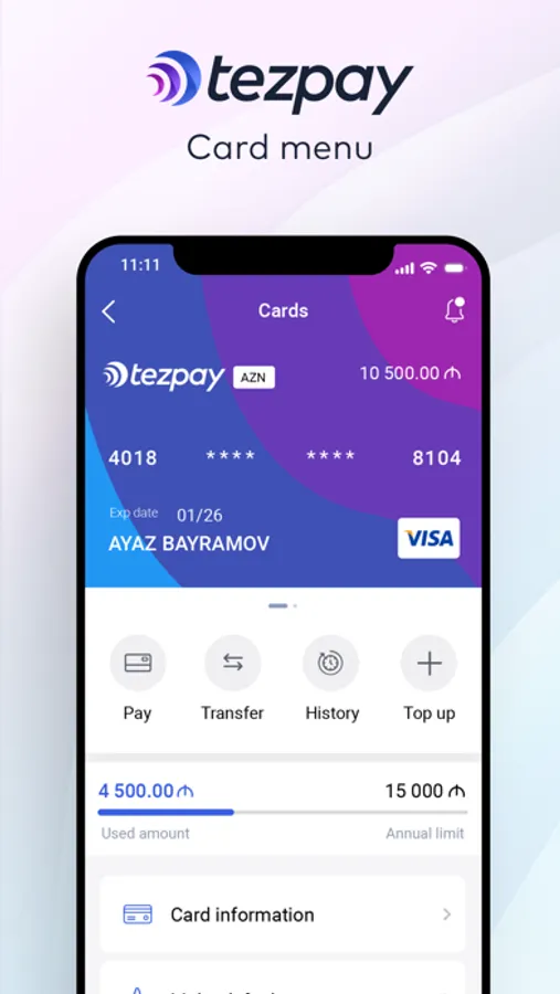 Create digital “VISA Prepaid” card just in one click and operate it due to local banking regulations