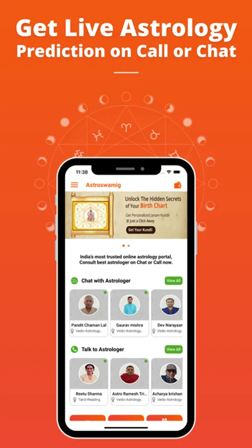 Consult Online Astrologer on Chat or Call with Astroswamig App. Choose the best astrologer, tarot card reader, Vedic astrologer, numerologist, Vastu expert and get rightful solution for all life aspects like marriage, career, love relationship, health, and finance. With 100+ astrologers and 1 lakh+ happy clients, this astrology app provides free horoscope predictions in English, Hindi, Bengali, Tamil, Marathi, and Telugu Language.