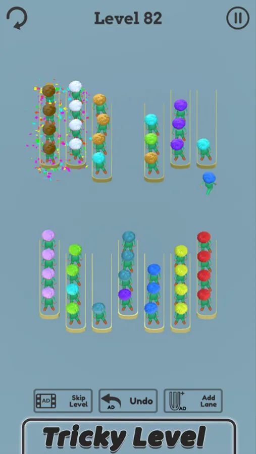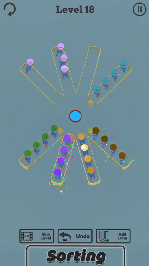 Crowd Sort Puzzle is a fun and addictive character sorting puzzle game. Try to sort the colored characters in the same line until the four characters with the same color stays in the same line. A challenging yet relaxing free game to exercise your brain.
