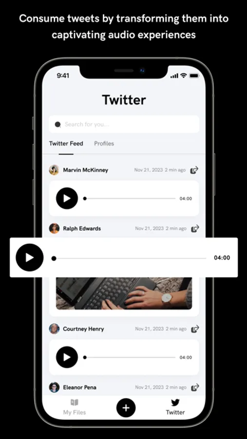 Share fascinating tweet audio on WhatsApp with just a tap. Spread the word and engage your friends and family with intriguing audio content from the app.