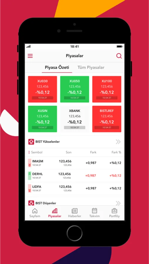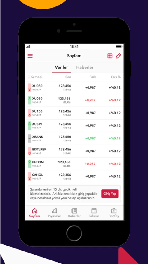 Finans piyasalarını anlık olarak takip edebilirsiniz. Borsa ve serbest piyasa verilerini takip edebilir. 10 kademeye kadar derinlikli borsa verilerini izleyebilirsiniz. BİST, VİOP, Altın, Döviz anlık fiyatlarına ulaşmak için hemen indirin.