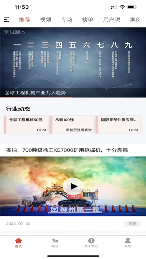 工程机械CCM面向行业各个细分领域的从业人员,以多维度分类的行业动态、T50峰会信息、企业专题、用户分享,满足企业或用户解读行业、分享观点、交流信息的功能