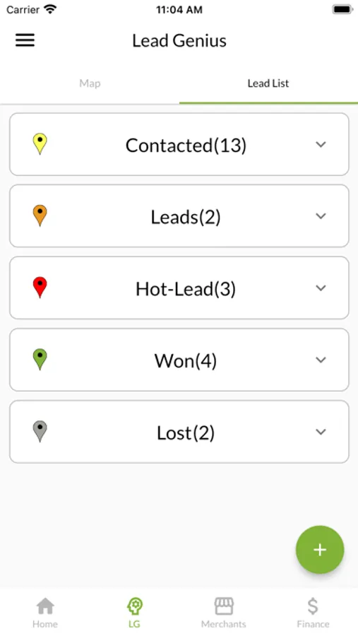 - Visualize your existing leads through the integrated map, filter and view to fit your specific needs; Review, Leads, Contacted, Won, and Loss.